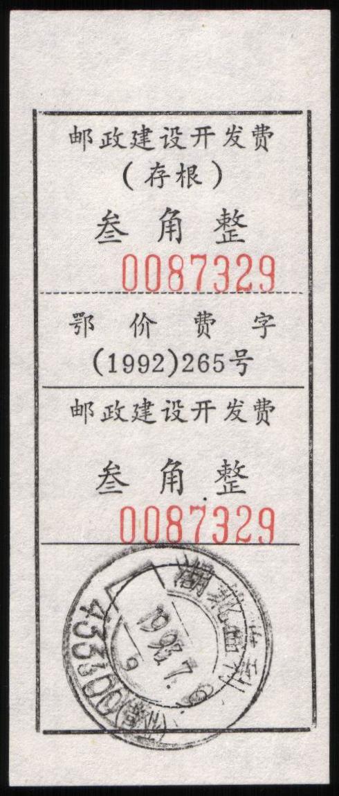 | Receipt Description | 64x42mm. Imperforated. Red 6 digits number. | |