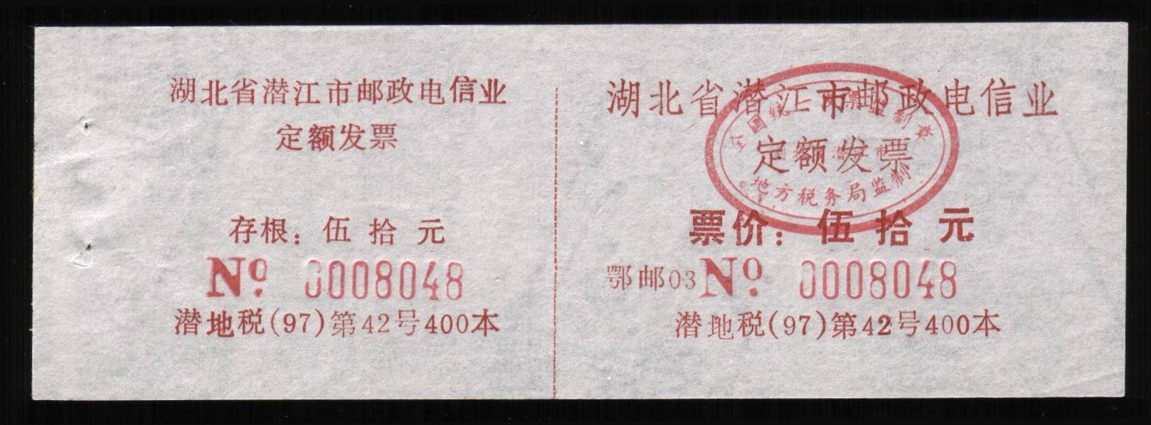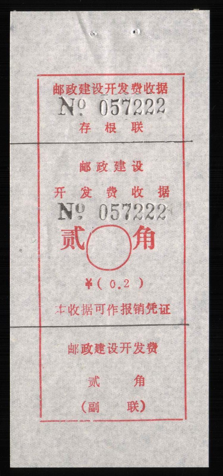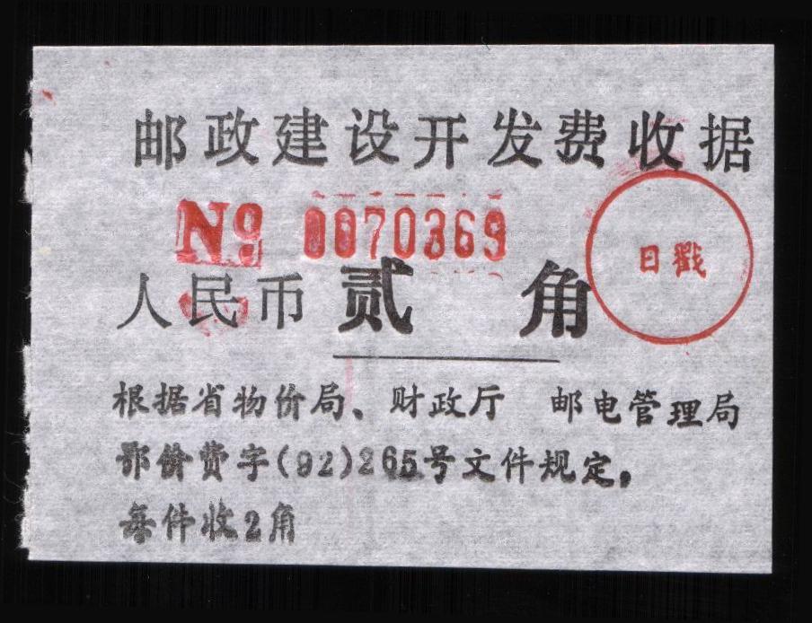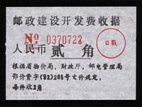 | Receipt Description | 66x41mm. Imperforated. Red 7 digits number. Red control chop. | |