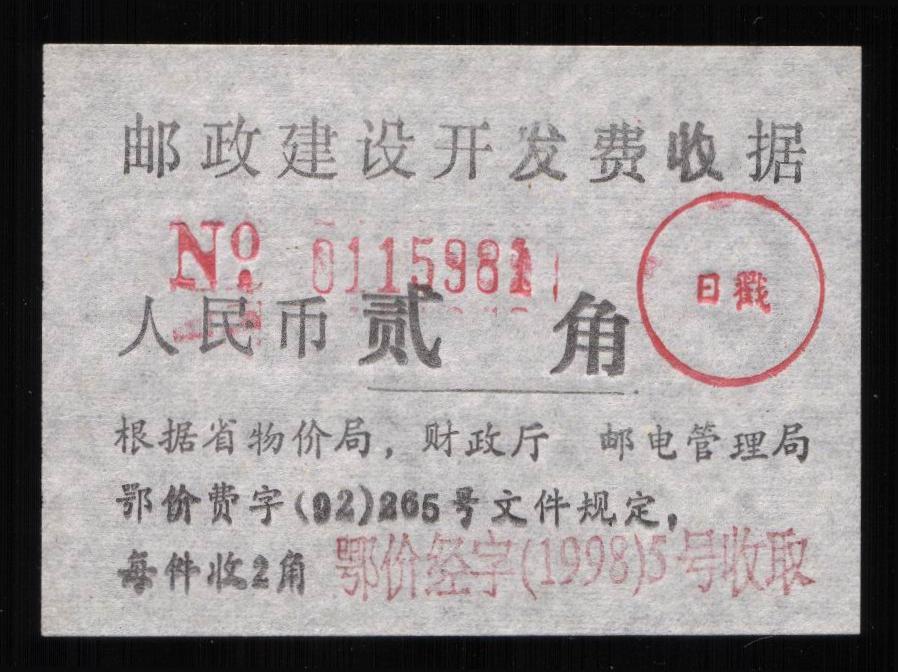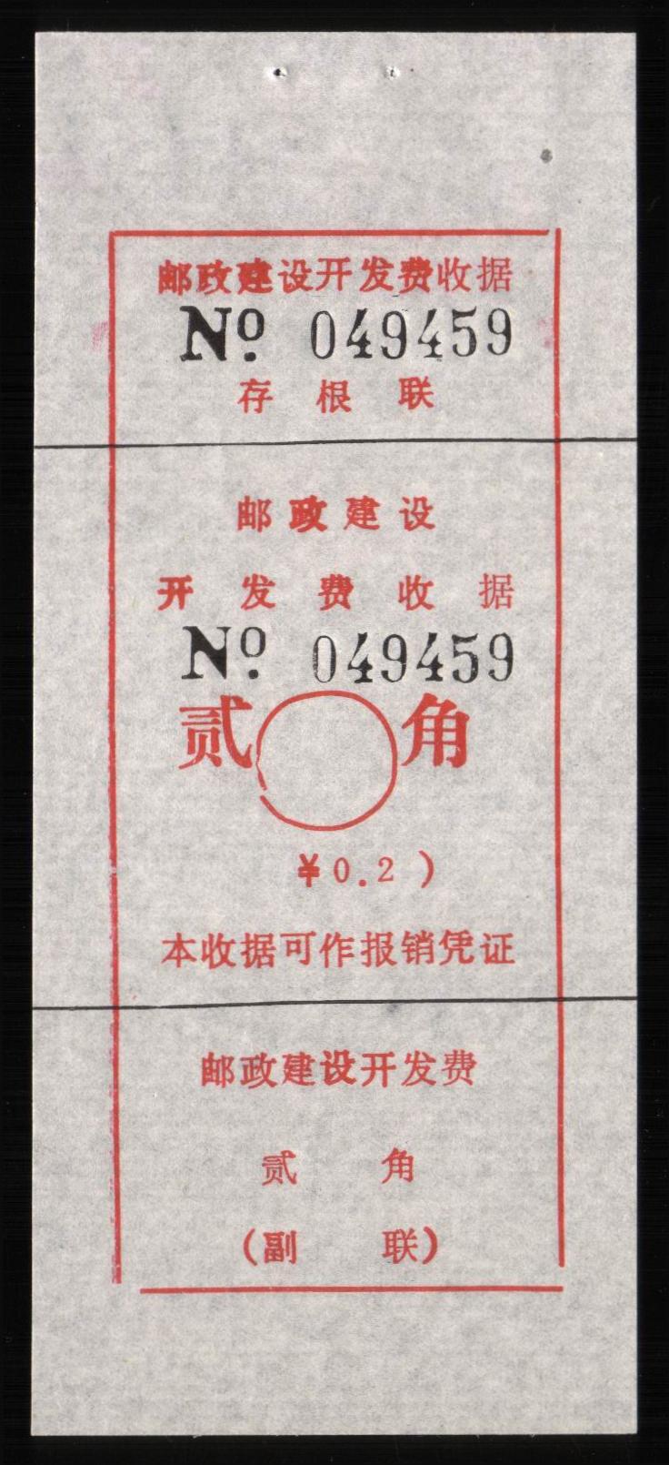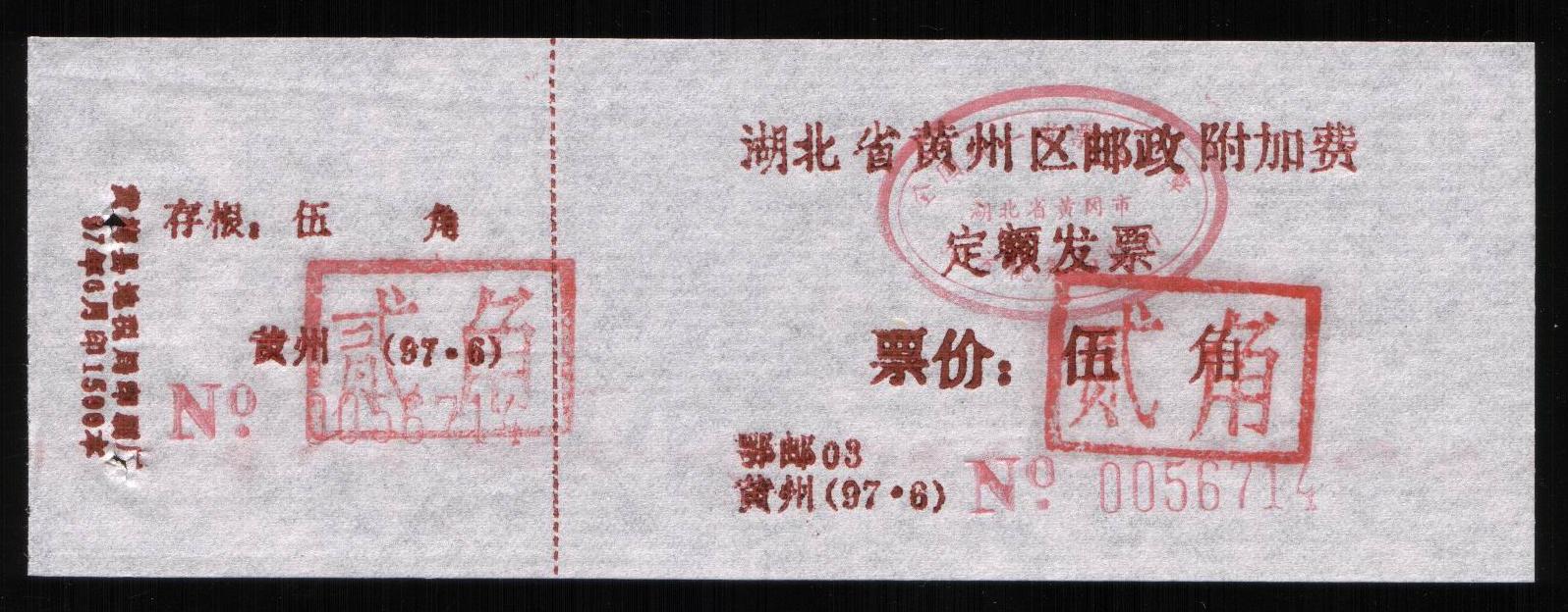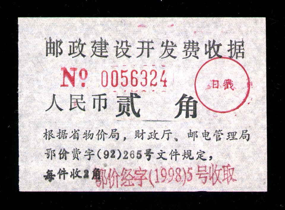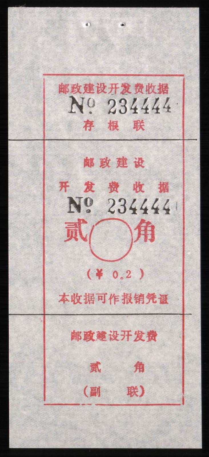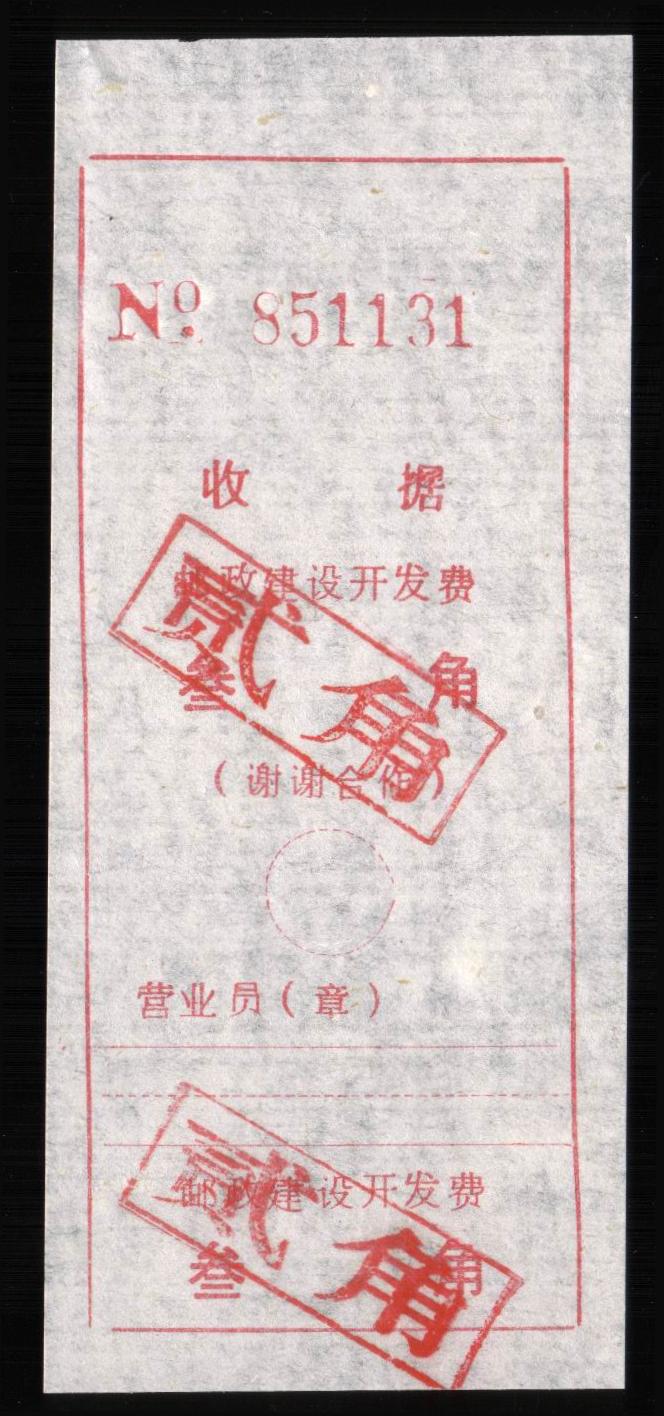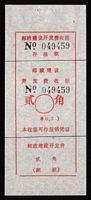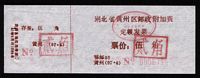 | Receipt Description | 85x47mm. Imperforated. Red 7 digits number. Red surcharge. Red control chop. | |