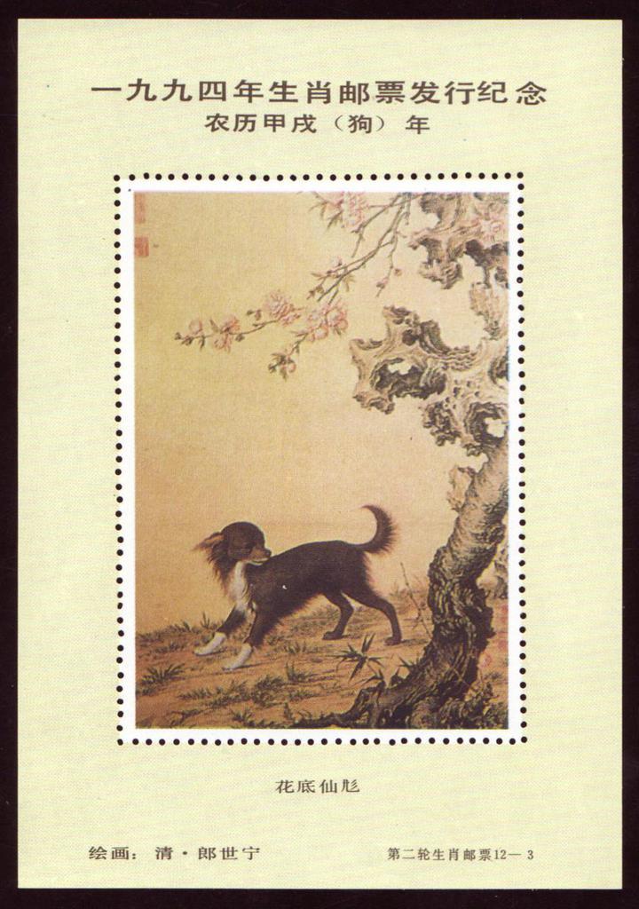 | Description | In Comm of the Issue of the 1994 Zodiac Sign Stamps Jiaxu Year (Year of the Dog). Qing Dynasty Paintings by Lan Shining. | |