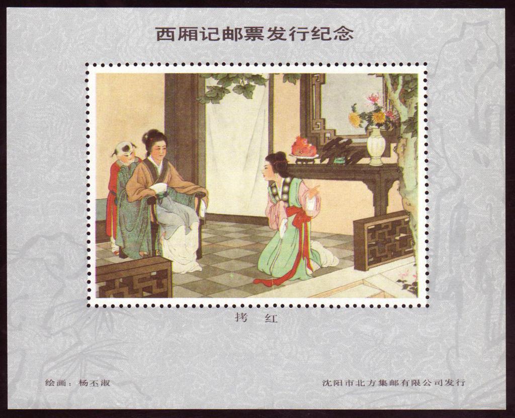 | Description | In Comm of the issue of the 'Story of the Western Chamber' stamps. Painter: Yang Pishu. | |