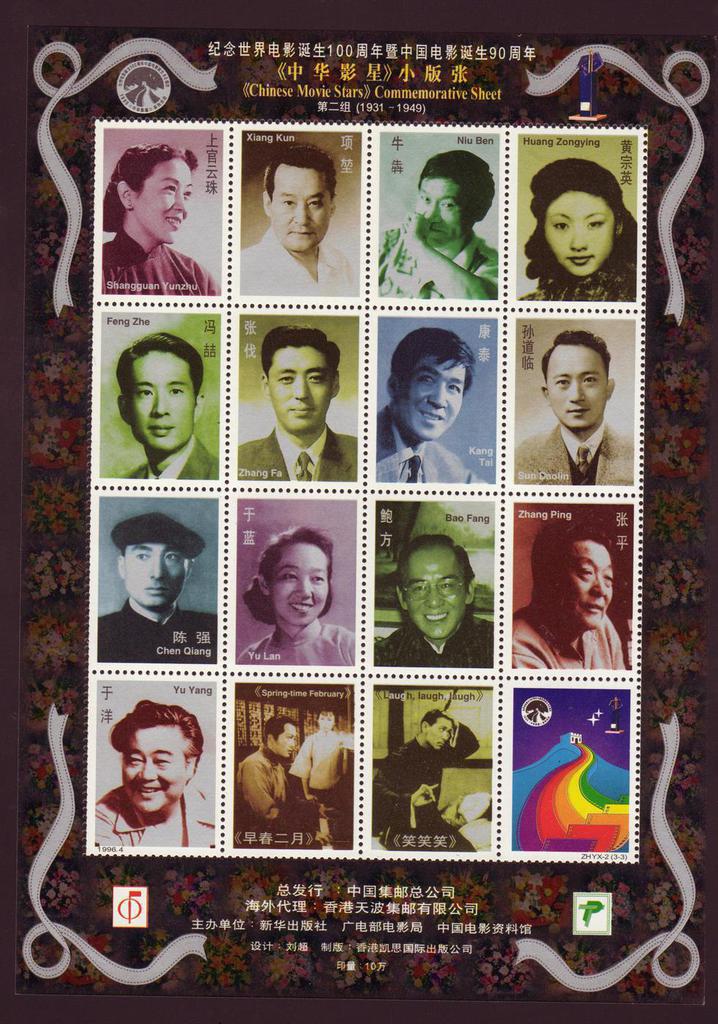 | Description | In Comm of the Centenary of International Movies and the 90th Anniv of the Birth of Movie Pictures. Chinese Movie Stars 1931 - 1949. | |