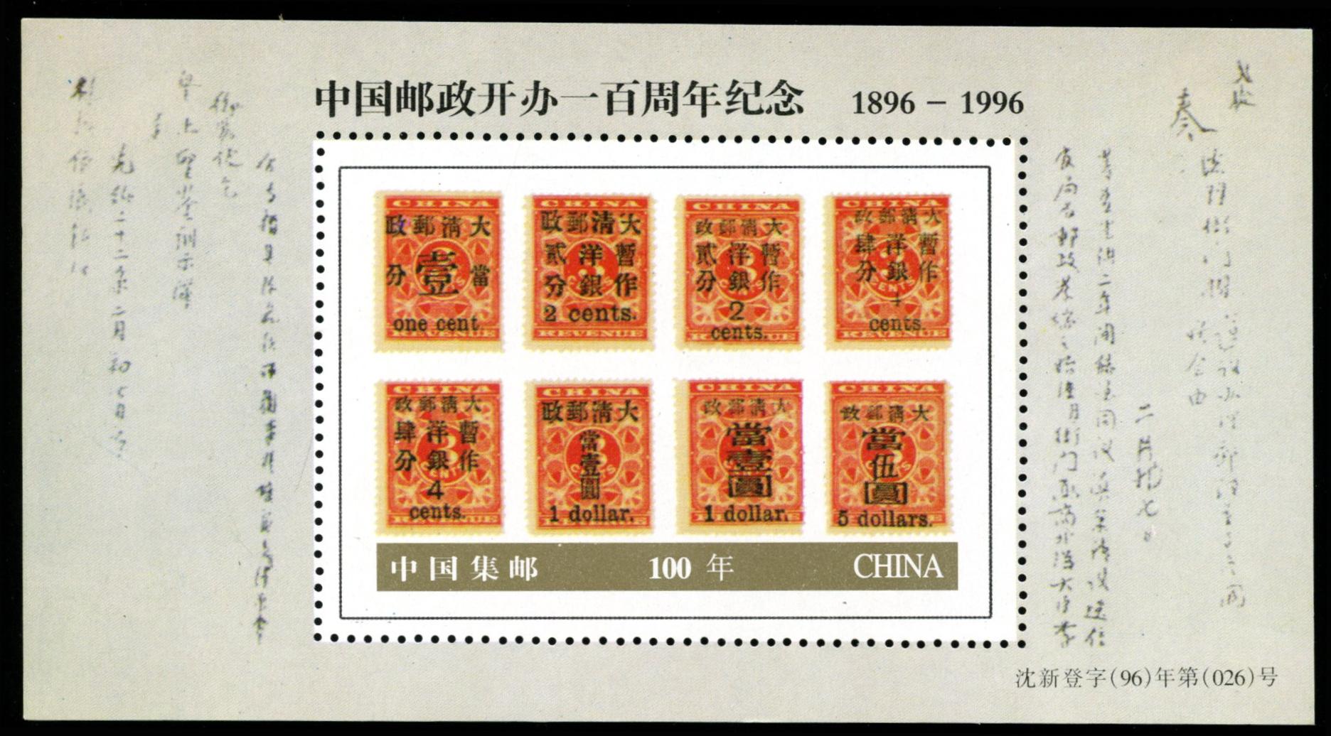 | Description | In Comm of the Centenary of the Founding of the Chinese Postal Service, 1896-1996. | |