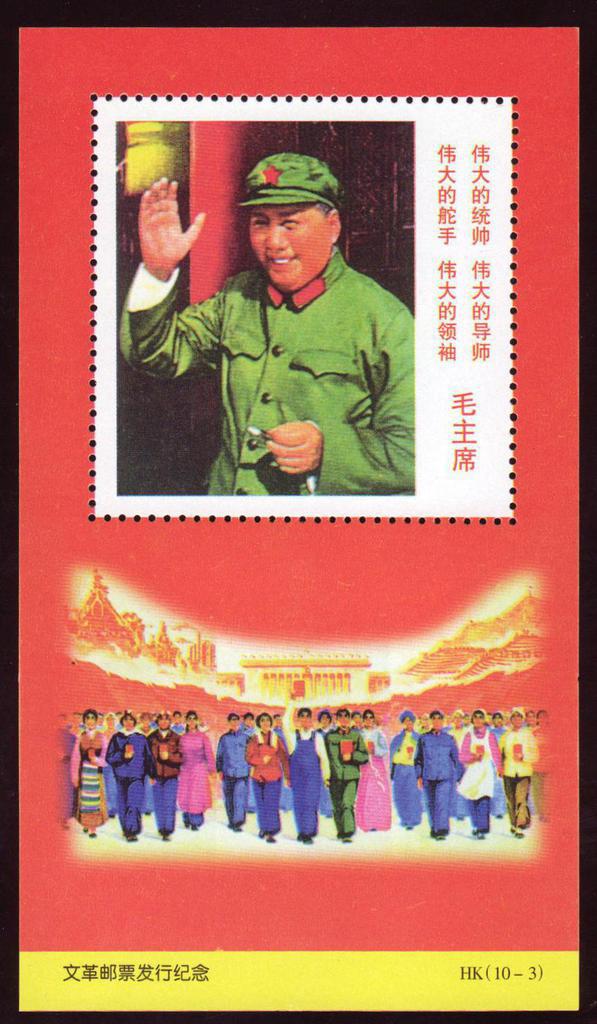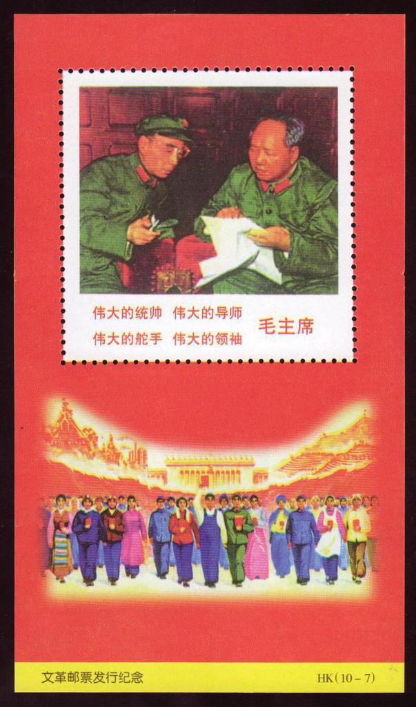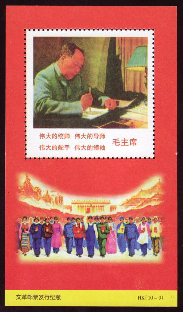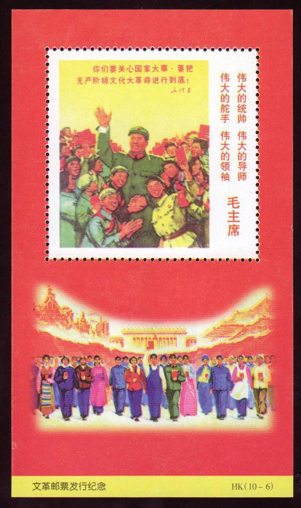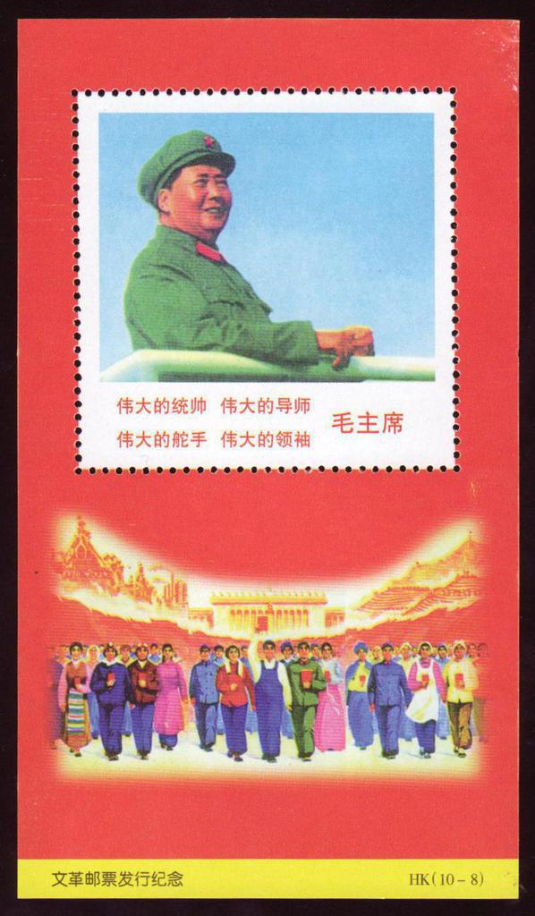 | Description | In Comm of the issue of the Cultural revolution Stamps. Inscription on stamp: Great Commander, Tutor, Helmsman and Leader - Chairman Mao. | |