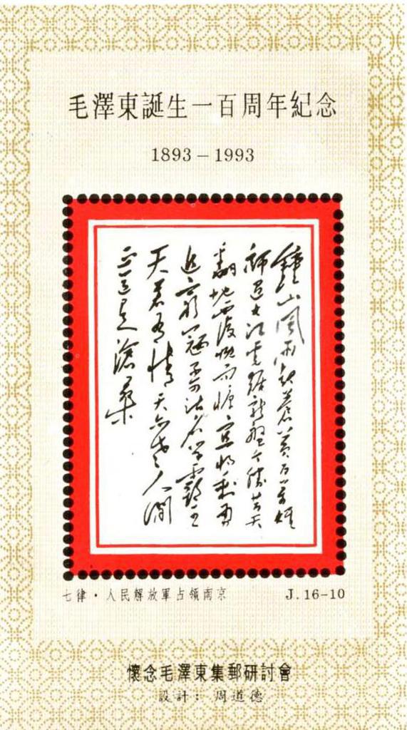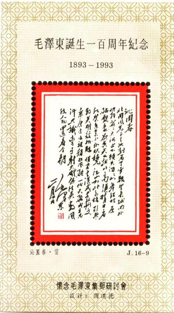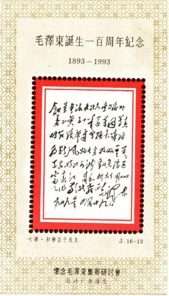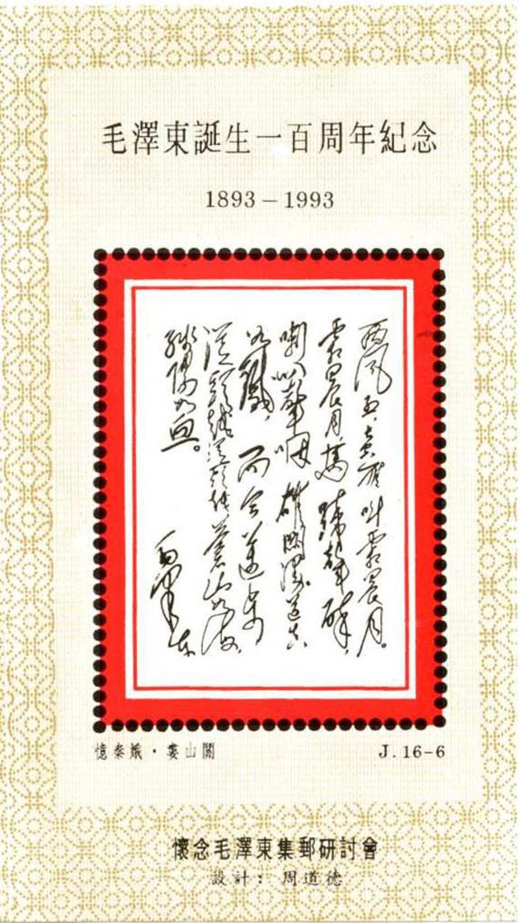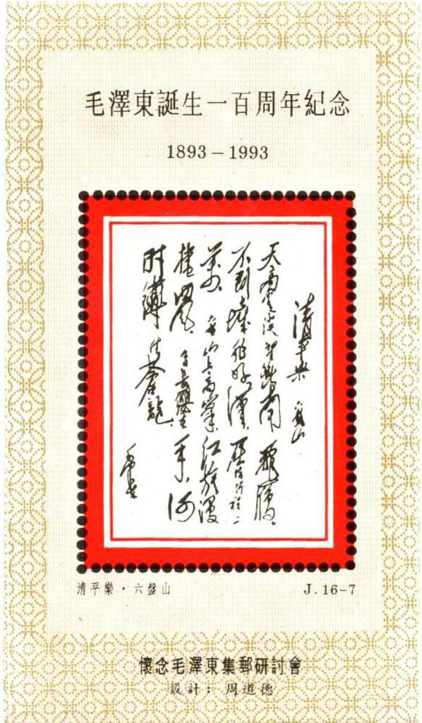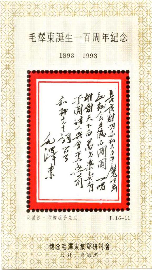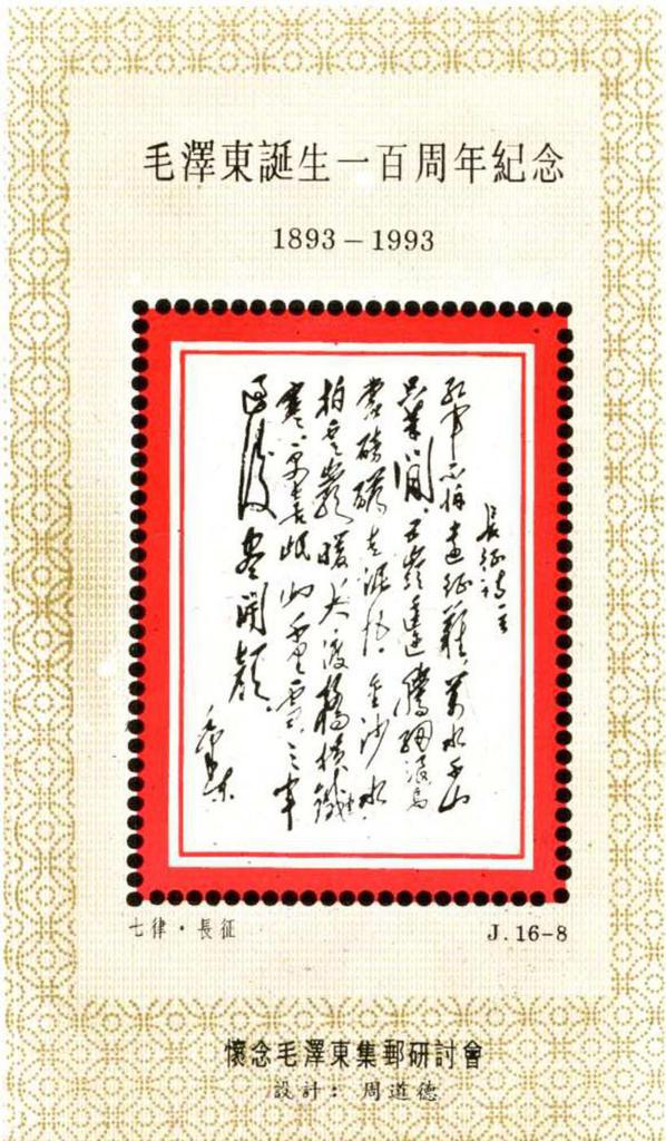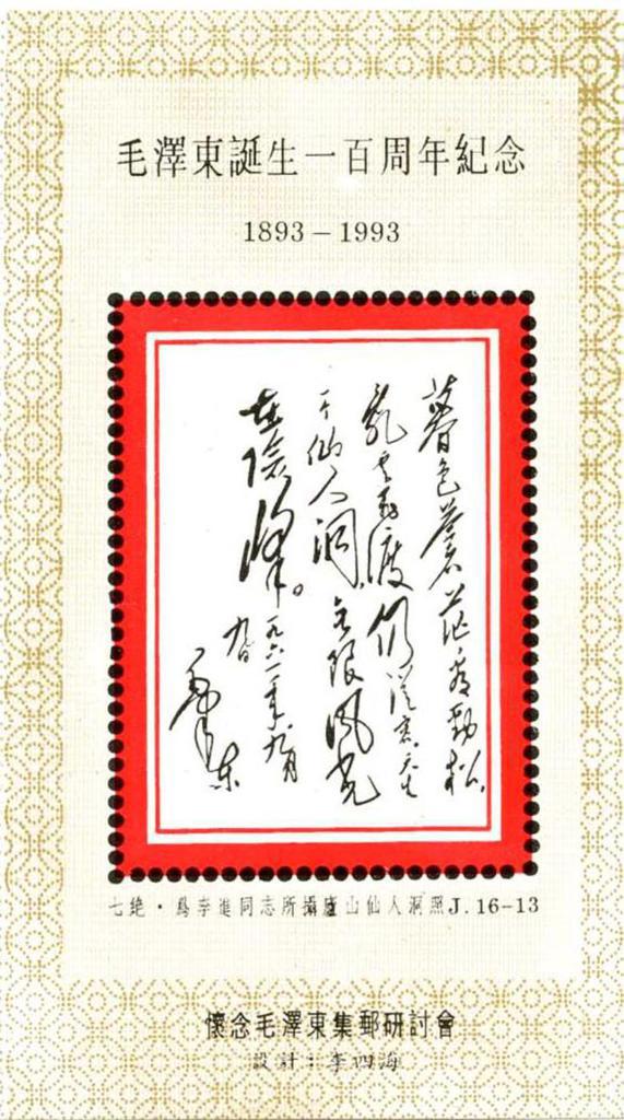| Description | In Comm of Mao Zedong's Birth Centenary - 1893-1993. Philatelic SymposiumCherishing the Memory of Mao Zedong. | |