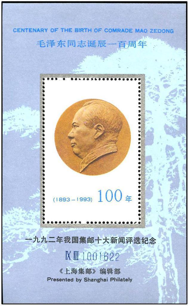 | Description | Centenary of the Birth of Comrade Mao Zedong (1893 - 1993) 100 Years. Commemoration of the Selection of the 10 Best Articles on Philately in China in 1992. | |