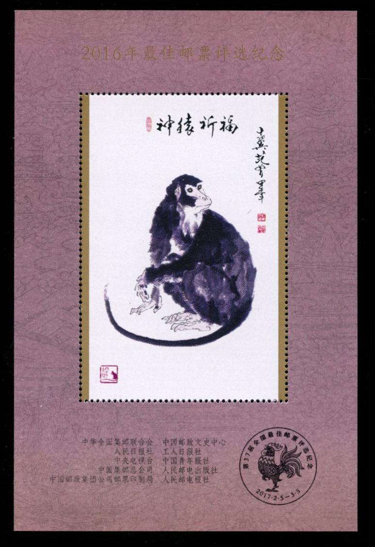 | Description | Souvenir of the Poll for Best Stamps of 2016 - 37th Poll for Best Stamps of China, 5.2.2017 - 5.3.2017 | |