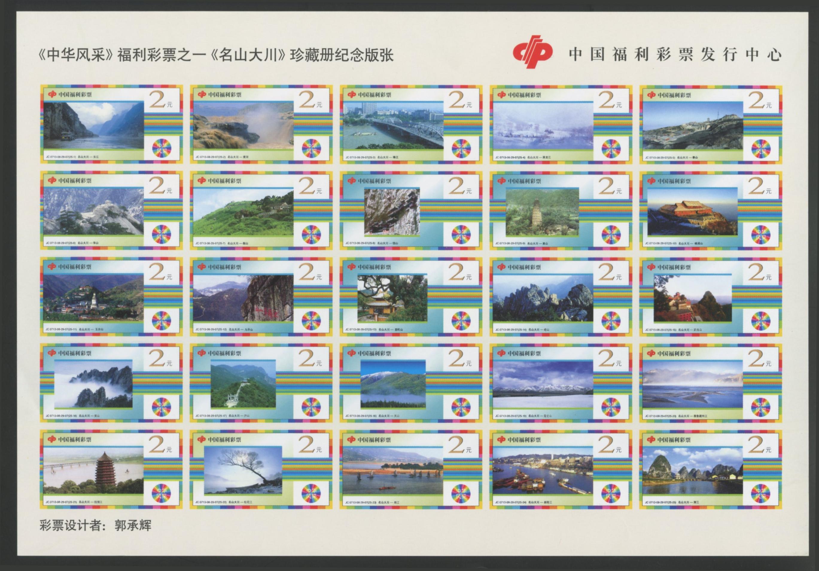 | Description | China Welfare Lottery, 2 Yuan. Famous Mountains and Rivers - Huangshan. | |